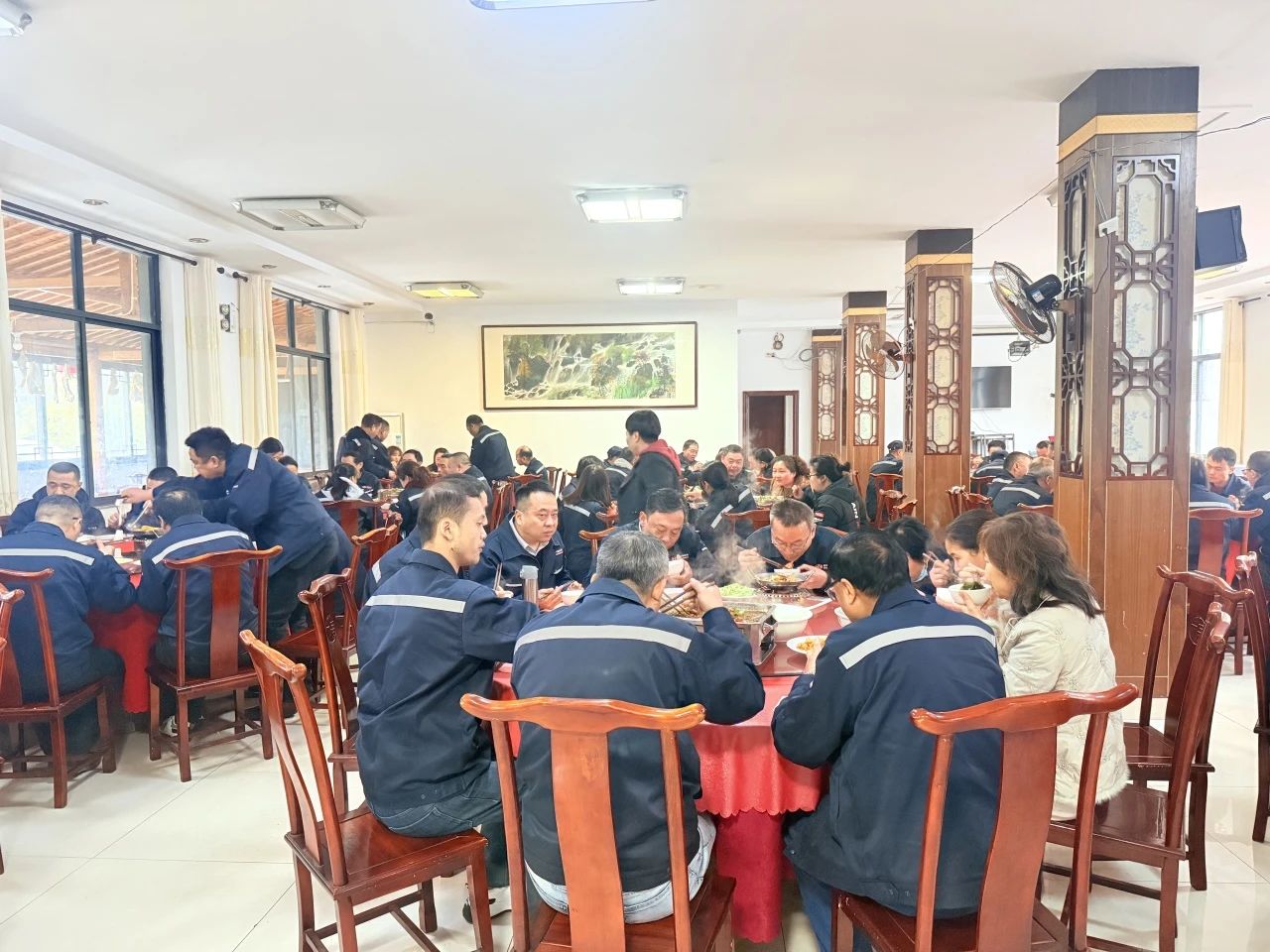 臨近用餐時間,大家來到當地一家極具徽州特色的餐廳用餐。木質的桌椅、雕花的窗欞,處處透露著古樸的氣息。餐桌上,一道道色香味俱全的徽菜陸續上桌,員工們圍坐在一起,一邊品嘗著地道美食,一邊分享著游玩的趣事。